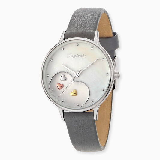 Uhr Edelstahl Herzen Tricolor mit Nubuk Lederband Grau