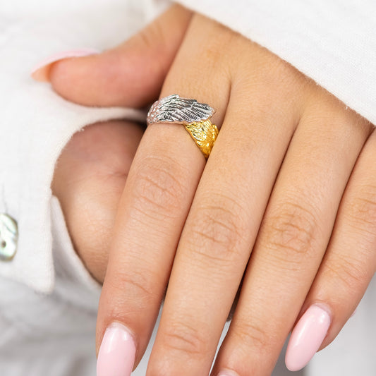 Ring 925er Silber Feder & Engel Bicolor mit Zirkonia