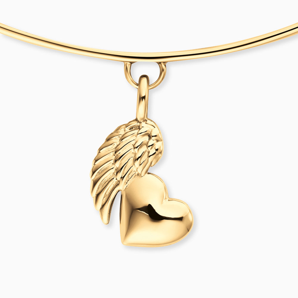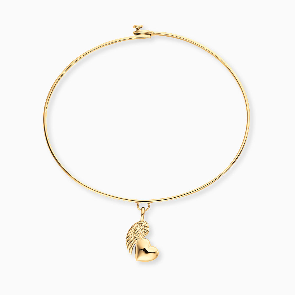 With Love - dieser filigrane Engelsrufer Armreif mit Herz und Flügel ist für einen ganz besonderen Menschen gedacht und verleiht pure Eleganz, wunderschöne Weiblichkeit und strahlende Jugend. Der schützende Flügel soll Dir Türen im Leben öffnen, das Herz schenkt Dir Liebe. Der Armreif kann mit einem Klick geöffnet werden und hat einen Umfang von 18,5 cm.