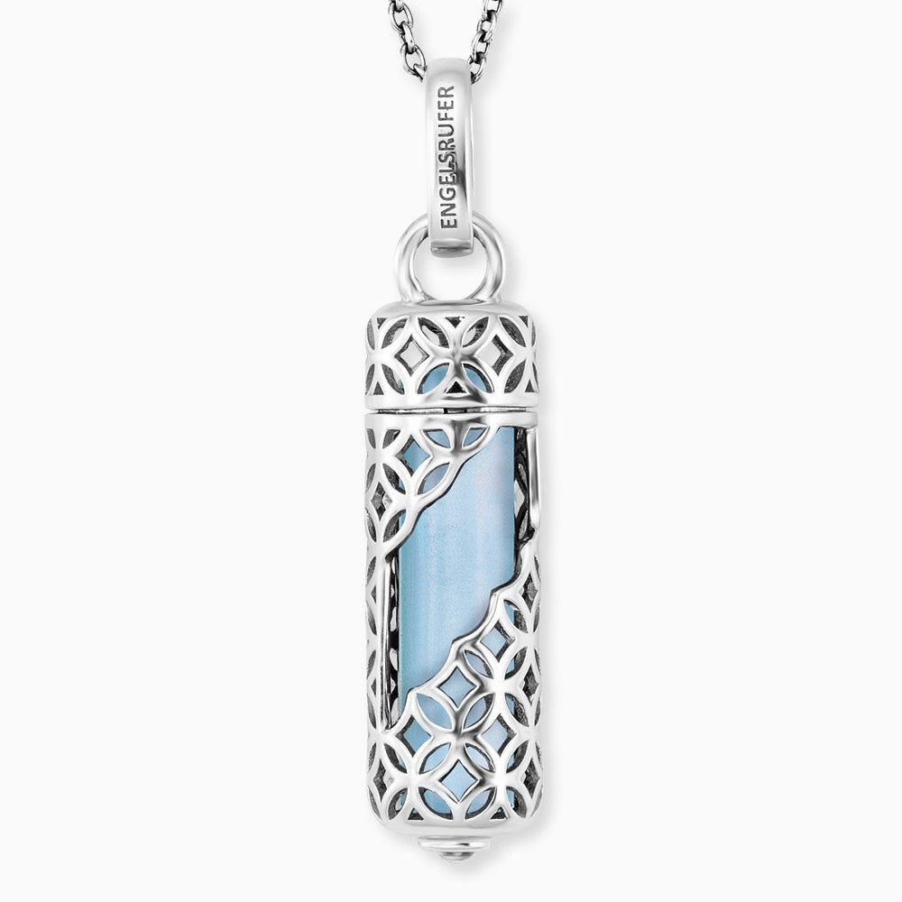 Dein persönlicher Kraftstein in einem filigranen Anhänger aus unserer Powerful Stone Kollektion. Unsere wunderschöne Engelsrufer Kette mit einem bezaubernden Schmuckgehäuse als Anhänger, präsentiert Dir hier einen Blauen Achat als "Stein der Gesundheit und Ausgeglichenheit".