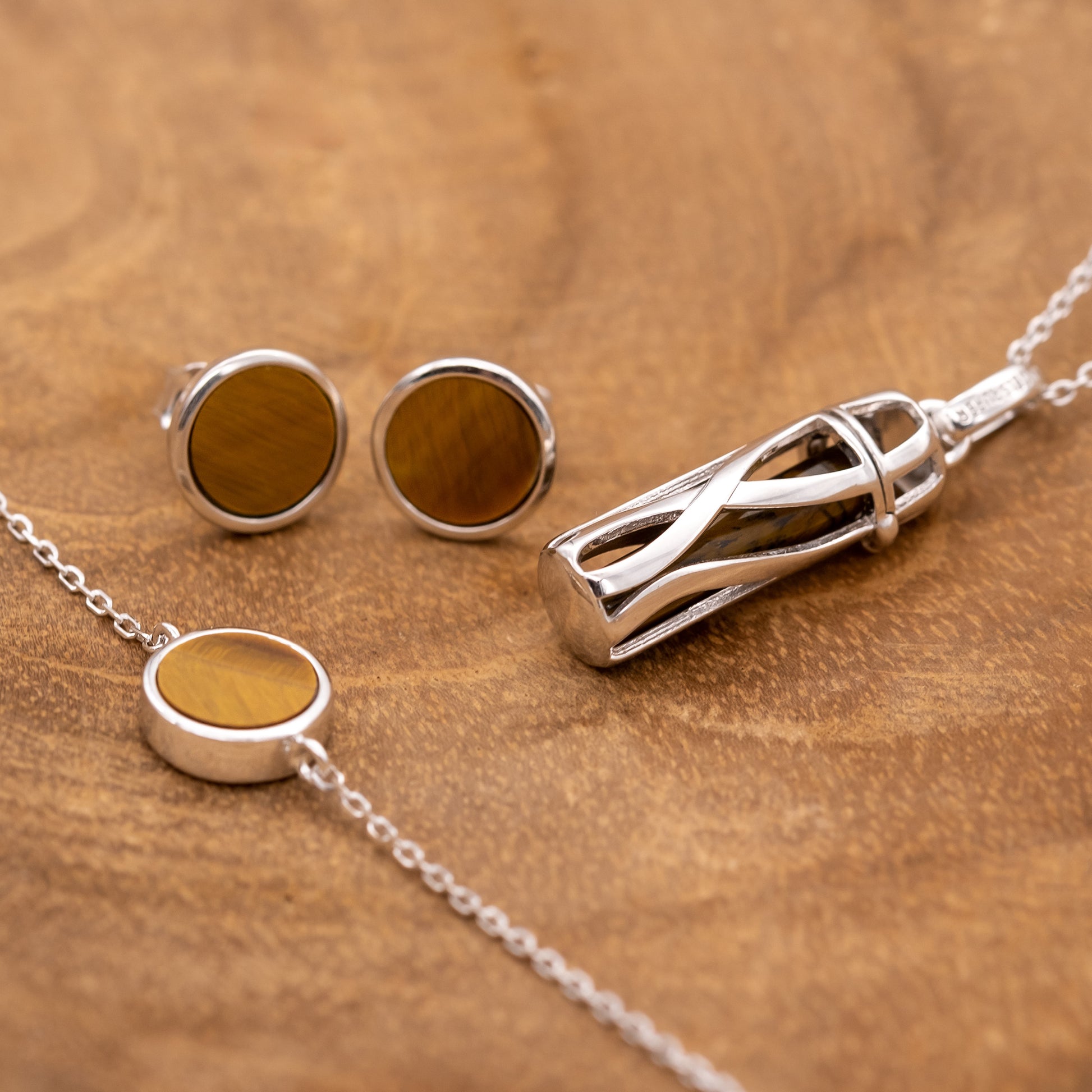 | Material | 925er Sterlingsilber rhodiniert, Tigerauge |
