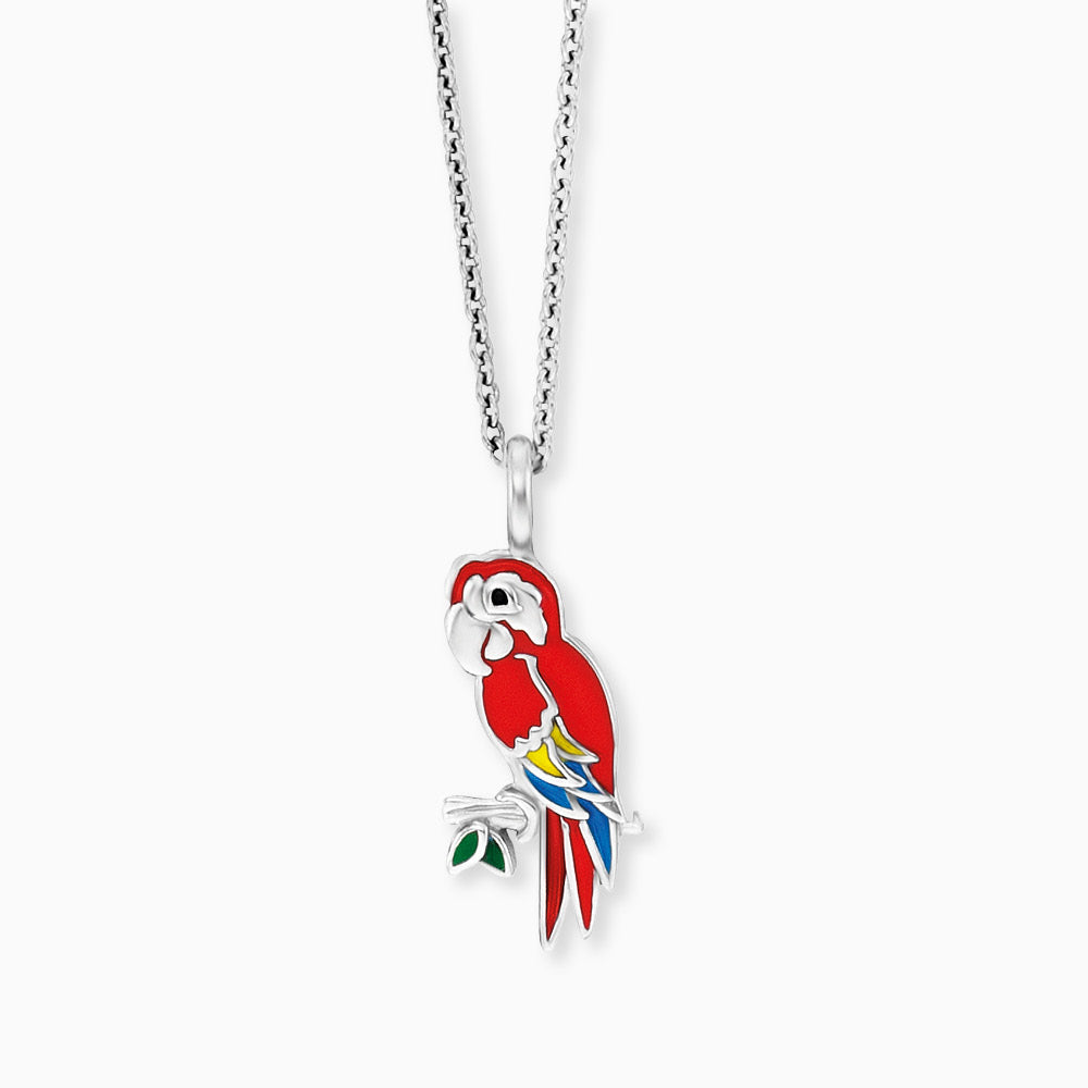 Kinder Halskette 925er Silber Papagei mit Emaille