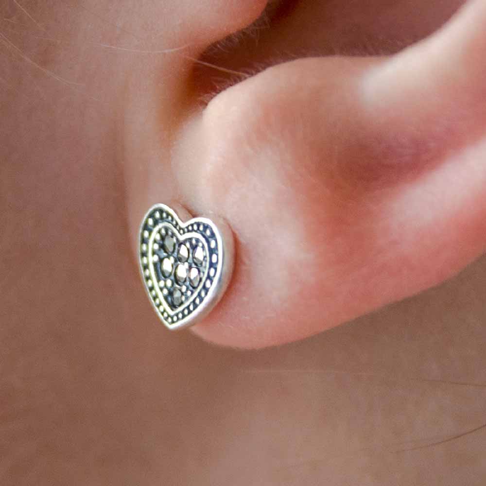 Ohrstecker 925er Silber Herz mit Markasit