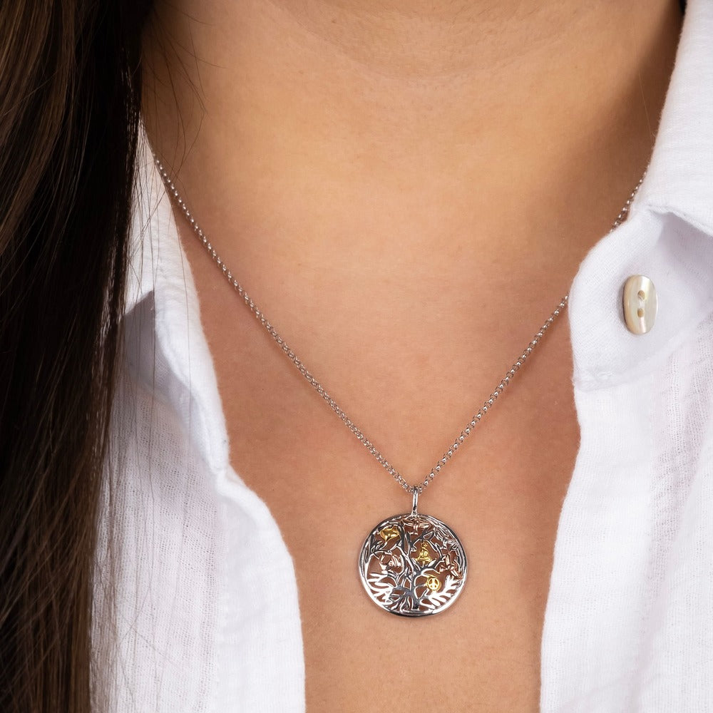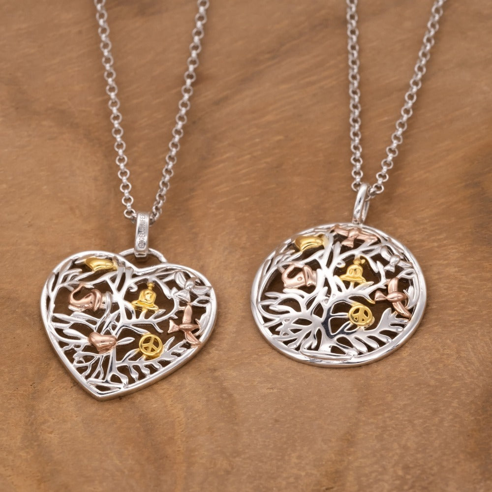 Diese traumhafte Engelsrufer Kette mit Anhänger in Tricolor verzaubert Dich durch die Vielzahl ihrer kleinen liebevollen Details. Der fein ausgearbeitete Lebensbaum mit seinen Motiven wie Herz, Buddha, Elefant und Taube schenken Dir unendliche Harmonie, Stärke und Lebensfreude. Das ausdrucksstarke Tricolor besticht in zart schimmernden Pastelltönen und wirkt besonders sanft. Kombiniert mit mehreren Ketten entsteht ein toller Layering-Effekt, der eine wunderschöne Symphonie ergibt. Das zeitlose Schmuckstück wird mit einem Karabinerhaken verschlossen und ist in zwei Längen verstellbar.
