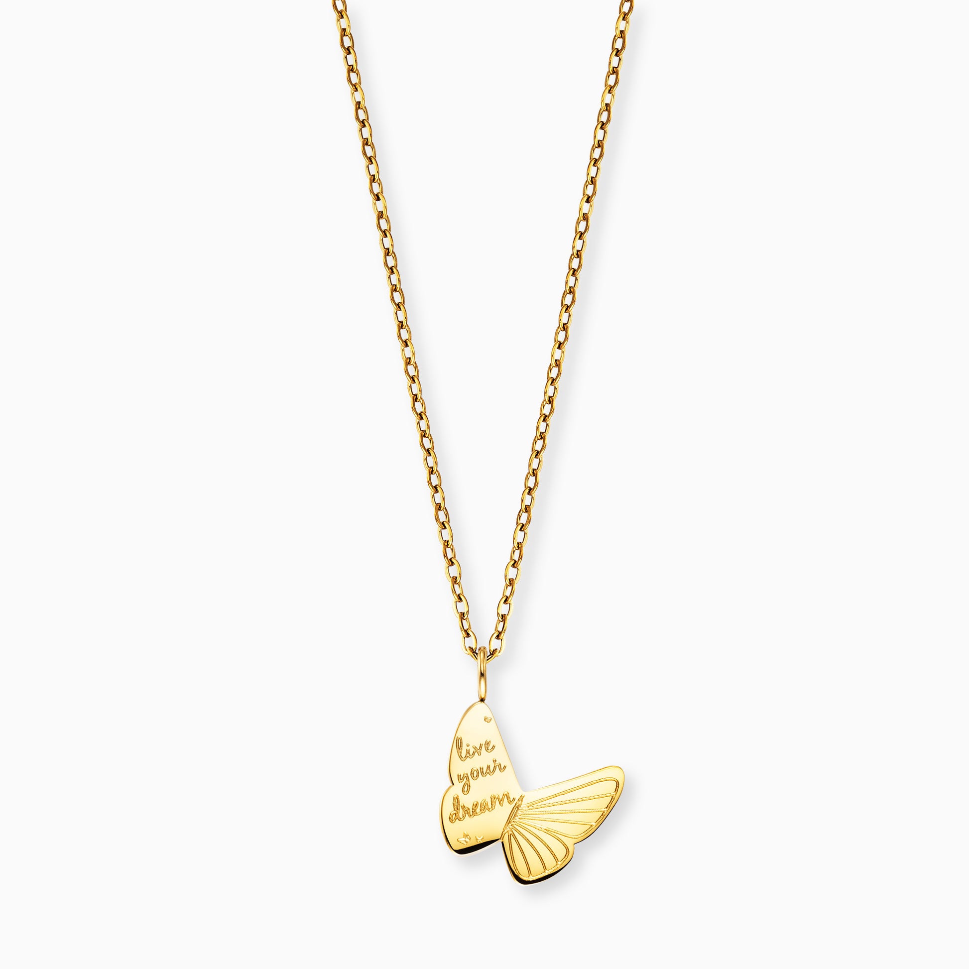 Diese elegante Halskette von MYSTEEL by Engelsrufer verkörpert die Schönheit der Verwandlung und die Freiheit, die eigenen Träume zu leben. Mit der eingravierten Botschaft „Live your dream“ erinnert dieses Schmuckstück täglich daran, an sich selbst zu glauben und den eigenen Weg zu gehen.