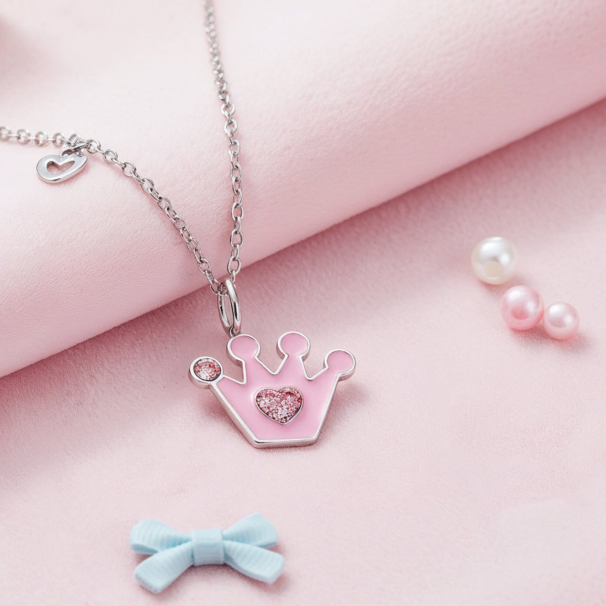 Kinder Halskette Edelstahl Glitzerkrone mit Emaille